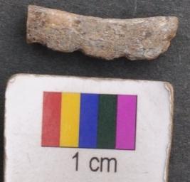 | Description / विवरण | It is a small fragment of a bangle of glass with triangular section. On the external ridge are small grooves at certain distance giving impression of beautiful design. |