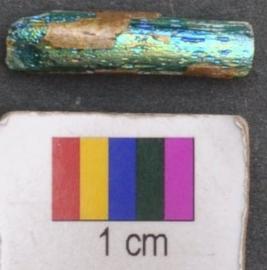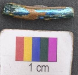 | Description / विवरण | It is a small fragment of a bangle of green glass with golden polish. |
