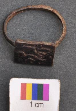 | Description / विवरण | It is a finger ring with a squrish top which has an unidentified motif or legend. It is neither corroded not encrusted with soil and looks relatively quite well preserved. |