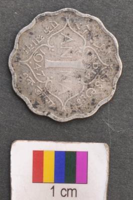 | Description / विवरण | It is a modern one Anna coin, which reads the year 1947 and King Emperor George VI. |