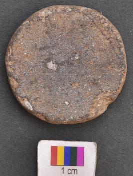 | Description / विवरण | It is a terracotta disc with thin section and grind edge. It is made of a base fragment of a pot. |
