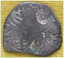| Description / विवरण | The shape of the coin is irregular. Obverse A Sun, six armed wheel, tree, a circle within a dot flanked by two taurines and three indistinct symbols. Reverse Sun, six armed wheel, taurine, animal and some indistinct symbols. |