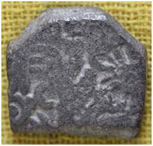 | Description / विवरण | The shape of the coin is hexagonal. Obverse A Sun, animal, six armed wheel and some indistinct symbols. Reverse Four taurines around a dot and some indistinct symbols. |