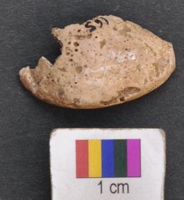 | Description / विवरण | It is cowrie fragment perhaps used as a gamesman. |