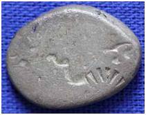 | Description / विवरण | The shape of the coin is oval. Obverse A Sun, three arched hill, snake and some indistinct symbols. Reverse Some indistinct symbols. |