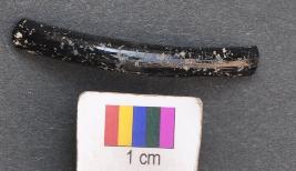 | Description / विवरण | It is fragment of black glass bangle with flat inner face and round outer one. |