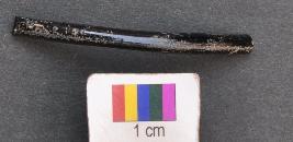 | Description / विवरण | It is fragment of black glass bangle with flat inner face and round outer one. It has irregular body. |
