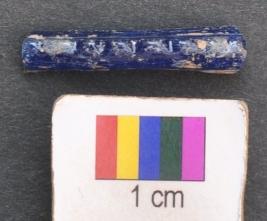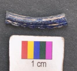 | Description / विवरण | It is fragment of blue glass bangle with flat inner face and with a ridge on the outer face having segmented grooved decoration. |