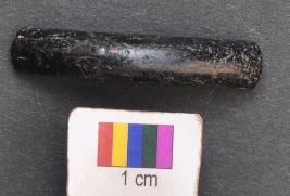 | Description / विवरण | It is fragment of a black glass bangle with flat inner face and round outer one. |
