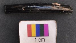 | Description / विवरण | It is fragment of a black glass bangle with flat inner face and round outer one. |