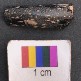 | Description / विवरण | It is fragment of a black glass bangle with flat inner face and round outer one. |