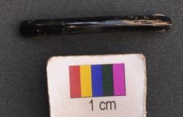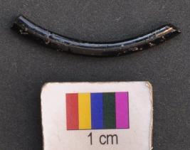 | Description / विवरण | It is fragment of a black glass bangle with flat inner face and round outer one. It has thin section. |