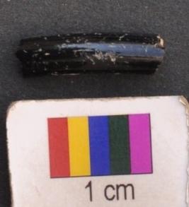 | Description / विवरण | It is fragment of a black glass bangle with flat inner face and round outer one. |