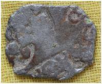 | Description / विवरण | The shape of the coin is irregular. Obverse Sun, six armed wheel and other symbols are not distinct due to abrasion. Reverse Blank. |