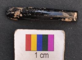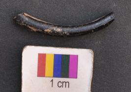 | Description / विवरण | It is fragment of a black glass bangle with flat inner face and round outer one. |