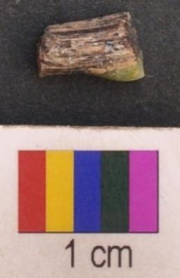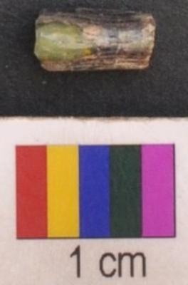 | Description / विवरण | It is fragment of a black glass bangle with flat inner face and round outer one. It has thin body. It has dotted applique design on the outer face. |