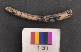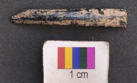 | Description / विवरण | It is fragment of a black glass bangle with flat inner face and round outer one. It has uneven thickness. |