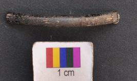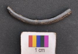 | Description / विवरण | It is fragment of a black glass bangle with flat inner face and round outer one. It has thin body. |