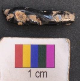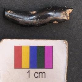 | Description / विवरण | It is fragment of a black glass bangle with round section and wavy body. |