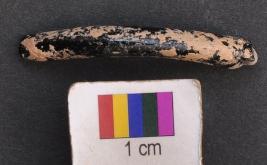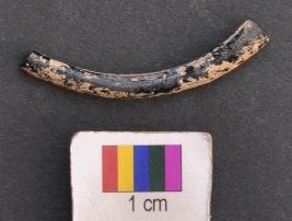 | Description / विवरण | It is fragment of a black glass bangle with flat inner face and round outer one. It has thin body. |