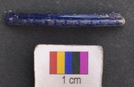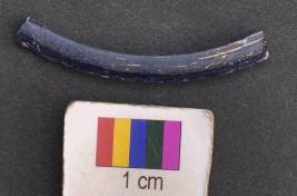 | Description / विवरण | It is fragment of a blue glass bangle with triangular section with segmented design on outer face. |