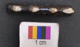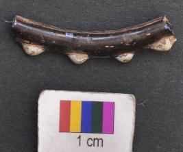 | Description / विवरण | It is fragment of a black glass bangle with triangular section and dotted applique design on outer face. |