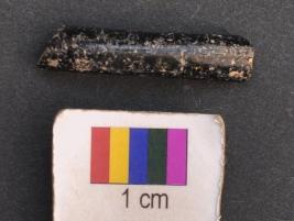 | Description / विवरण | It is fragment of a black glass bangle with flat inner face and round outer one. It has thin body. |
