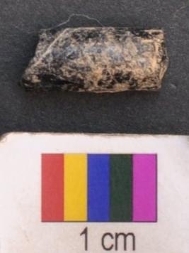 | Description / विवरण | It is fragment of a black glass bangle with flat inner face and round outer one. It has thin body. |