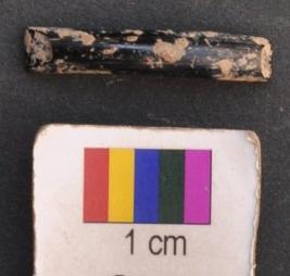 | Description / विवरण | It is fragment of a black glass bangle with flat inner face and round outer one. It has thin body. |