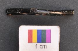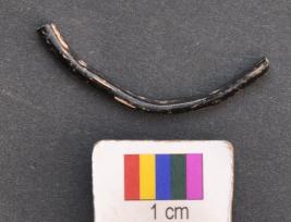 | Description / विवरण | It is fragment of a black glass bangle with flat inner face and round outer one. It has irregular and thin body. |
