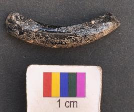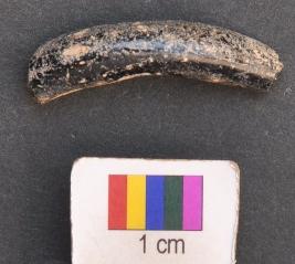 | Description / विवरण | It is fragment of a black glass bangle with flat inner face and round outer one. It has thick body. |