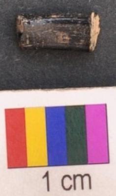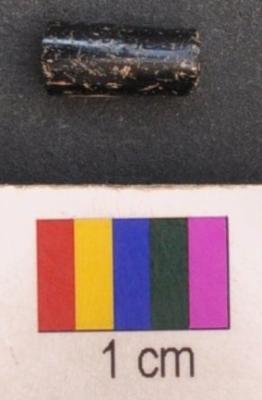 | Description / विवरण | It is small fragment of a black glass bangle with flat inner face and round outer one. It has thin body. |