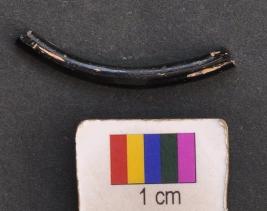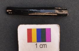 | Description / विवरण | It is fragment of a black glass bangle with flat inner face and round outer one. It has thin body. |