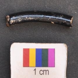 | Description / विवरण | It is fragment of a black glass bangle with flat inner face and round outer one. It has thin body. |