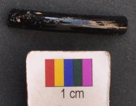 | Description / विवरण | It is fragment of a black glass bangle with flat inner face and round outer one. It has thin body. |