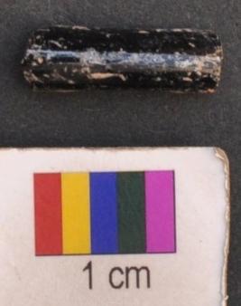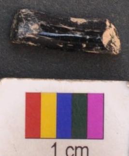 | Description / विवरण | It is fragment of a black glass bangle with flat inner face and round outer one. It has thin body. |
