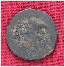 | Description / विवरण | The shape of the coin is circular. Obverse- Kushana type king, standing with his left arm extended, and his right arm is not clearly visible. Reverse- Probably the figure of MAO or Moon-God with his right arm curved upward and the crescent above the left shoulder. |