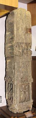 | Description / विवरण | This pillar belongs to the fold of early phase. It is a decorated pillar. The top portion of the pillar is plain. The decoration is seen in all sides. The fronal portion of the pillar is decorated with a kalasa at the bottom. Above it there is amorous couple standing in tribhanga pose and is holding each other. Above it a person is seen who is holding a chouri in his right hand and left hand is resting over his thigh. Above it there is a chaitya arch flanked by two horses and above it there is a kirtimukha flanked by two gajabidals. The back portion of the pillar isn t clearly seen. In the right side of the pillar, the base portion is designed with a kalasa and above it there is a standing amorous couple, in which the male person is holding the right hand of female. The rest portion has similar to the frontal portion. The left side of the pillar is same to the right side. |