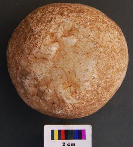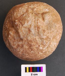 | Description / विवरण | It is an almost round stone ball, which may have been used as an hammer stone. It has pecking marks. |