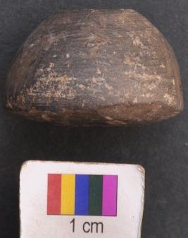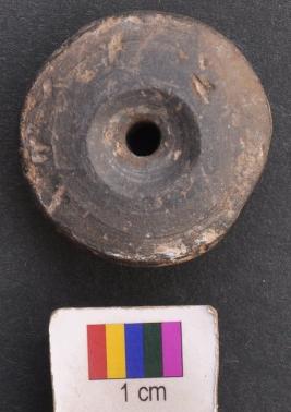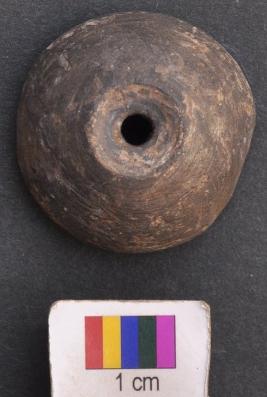 | Description / विवरण | It is an arecanut shape terracotta bead with fine surface treatment. On either side of perforation is a shallow depression. It is suspected that it may have been used as spindle also. |