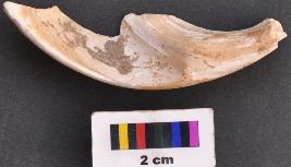| Description / विवरण | It is fragment of a shell bangle with wide face and faceted dorsal side. It has thin section. |