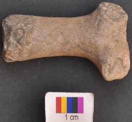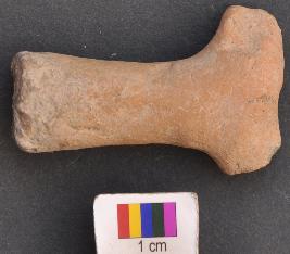 | Description / विवरण | It is a stylized animal figurine perhaps of a bull with thin body and very small knob like broken legs. Its frontal part including face is missing. |