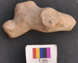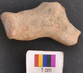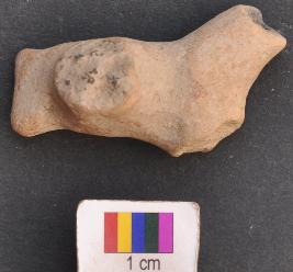 | Description / विवरण | It is a small terracotta figurine with prominent horn, though broken. It rear legs are also missing but the tail is flattened. It has very short body. It appears to be stylized representation of an animal figurine. |