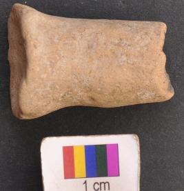 | Description / विवरण | It is a cylindrical terracotta object, the base of which is slightly widened and shallow in the core. Its upper half is missing. It may a symbolic animal figurine. |