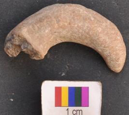 | Description / विवरण | It is a curved terracotta object with pointed end. It looks like fragment of a horn of bull figurine. |