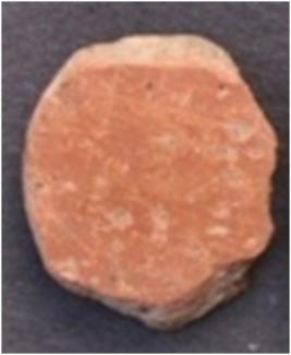 | Description / विवरण | It is a small circular terracotta disc with irregular edge and thin section. |
