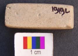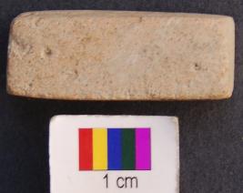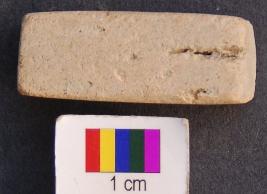 | Description / विवरण | It is a cuboid terracotta dice in which engraved miniscule depressions are made on the longer axis. The depressions are hardly visible. On the first facet there is only one depression, on the second two, on the third three and on the fourth facet four depressions are made. It was perhaps used as dice. |