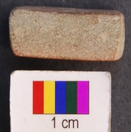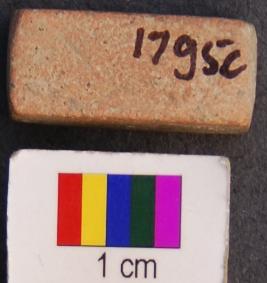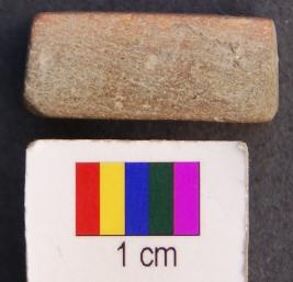 | Description / विवरण | It is a cuboid terracotta object with short length. There are two miniscule depressions on one of the faces whereas on the other three. It is perhaps an unfinished dice. |
