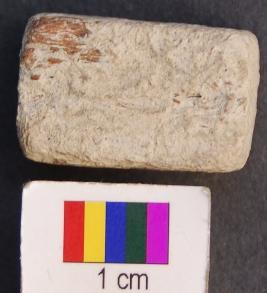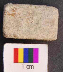 | Description / विवरण | It is a cuboid dice of bone in which miniscule depressions are engraved on the longer axis. On the first facet there is only one depression, on the second two, on the third three and on the fourth facet four depressions are made. Each depression is enclosed by a circle eventually making the face impressive. It was perhaps used as dice. |