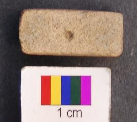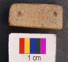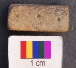 | Description / विवरण | It is a cuboid terracotta dice in which miniscule depressions are engraved on the longer axis. On the first facet there is only one depression, on the second two, on the third three and on the fourth facet four depressions are made. It was perhaps used as a dice. |